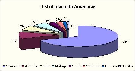 Destaca la mayor representación de Andalucía y en ella, el porcentaje más alto se obtiene para la provincia de Granada, seguido de Almería, Jaén y Málaga lo que confirma el carácter especializado del Herbario de la Universidad de Granada, que se constituye en el herbario de referencia para el estudio de la Flora de Andalucía oriental.