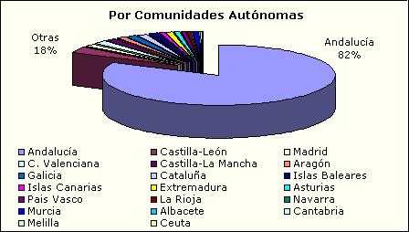 Donde se apunta ya la vocación de nuestro centro, pues junto a la representación que cabría esperar de la flora española, el siguiente país con mayor presencia es Marruecos seguido de Portugal. Si consultamos el número de pliegos por comunidad autónoma obtenemos los siguientes resultados: