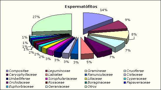 Respecto a las familias fanerogámicas representadas en nuestro centro, los resultados quedan reflejados en la siguiente gráfica: