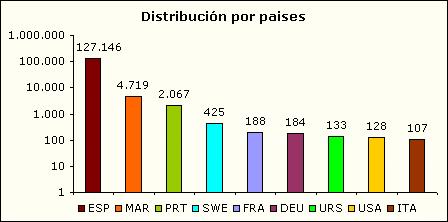 Otro análisis de interés sobre nuestros fondos, es la representación espacial. Un primer acercamiento por países nos ofrece los siguientes resultados: